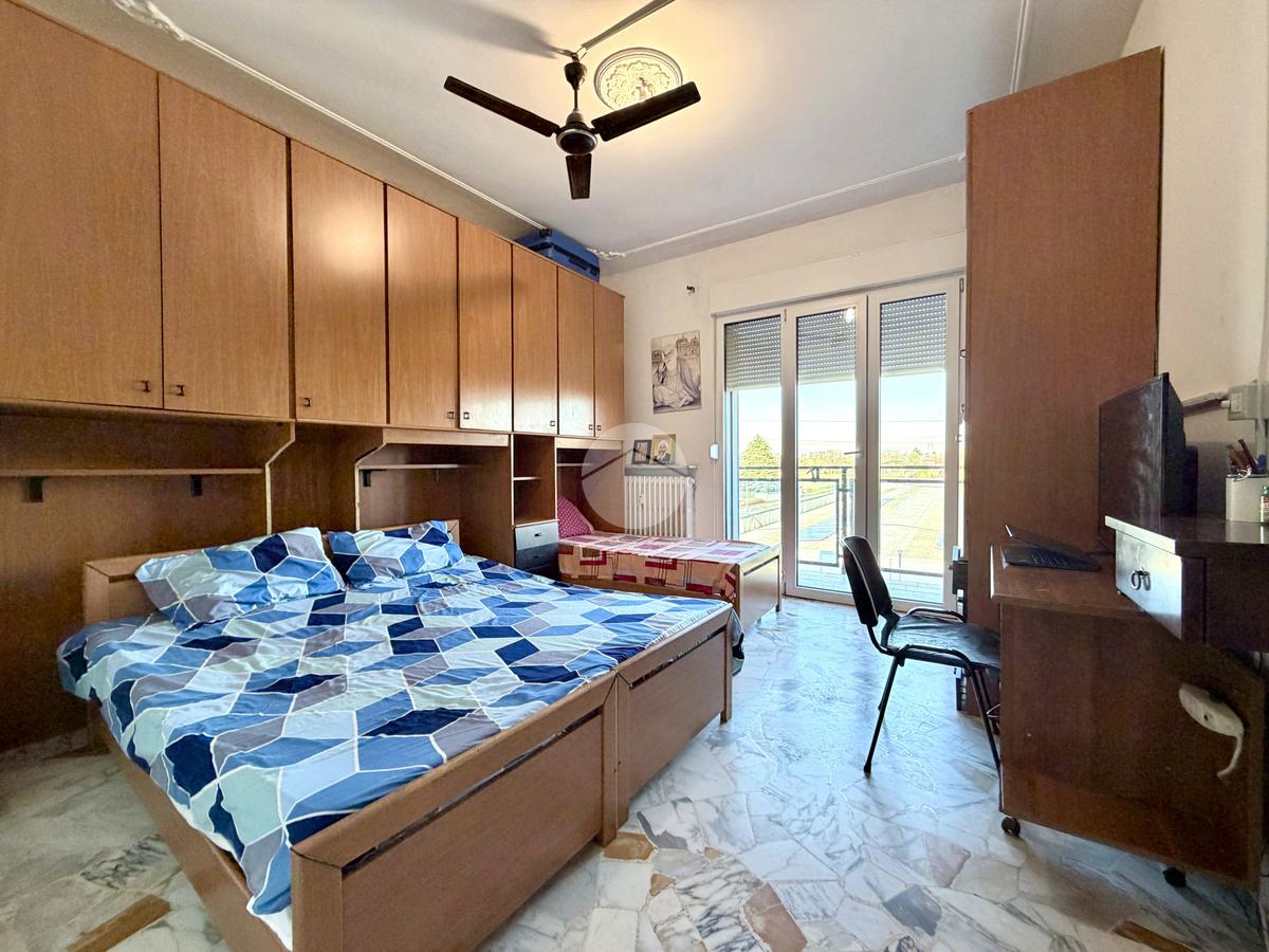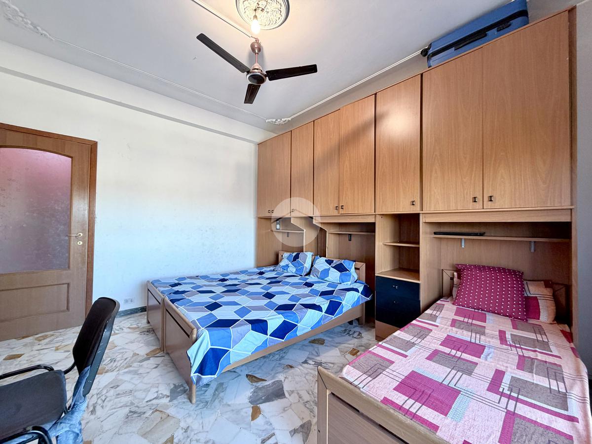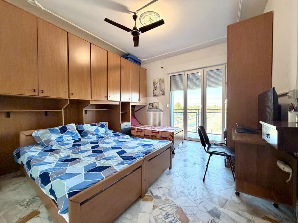 Il disimpegno notte conduce al bagno, dotato di pratica doccia e finestrato, e alle due camere matrimoniali, entrambe di generosa metratura. Una delle due gode inoltre dell’uscita diretta sul terzo balcone, che ne valorizza ulteriormente la vivibilità.