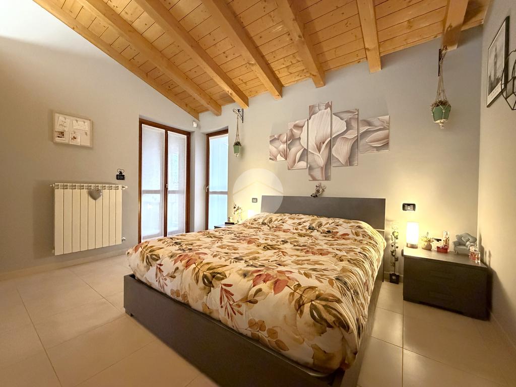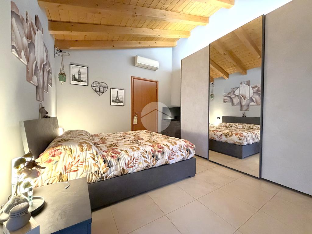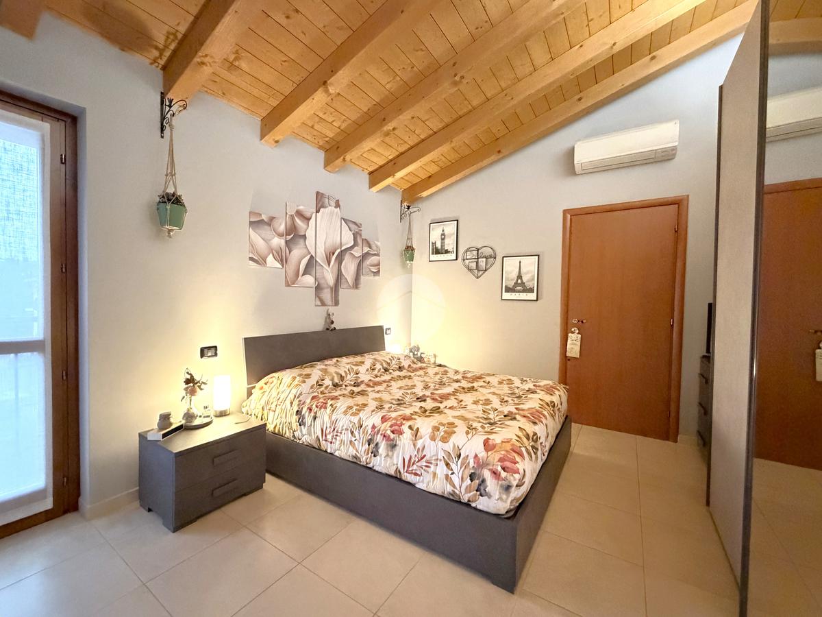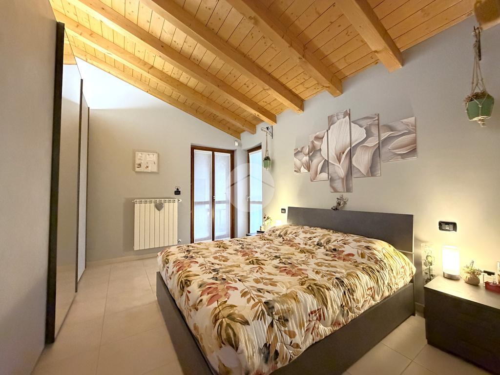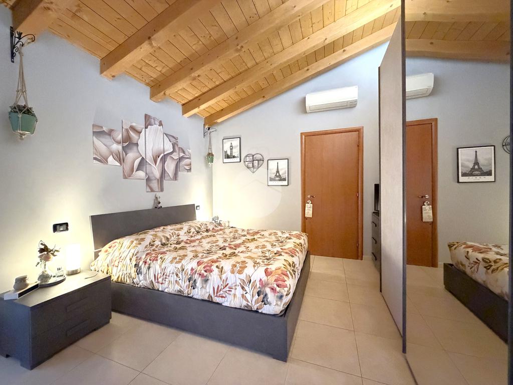La zona notte, ben separata, ospita un bagno finestrato con balcone, e una camera matrimoniale di ampia metratura, uno spazio intimo e rilassante arricchito da un terrazzino privato, ideale per iniziare la giornata con calma o concedersi momenti di relax al tramonto.